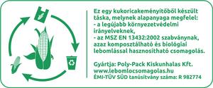 Cégünk a kukoricakeményítőből készült táskát – az első forgalomba helyezése előtt - bevizsgálásra küldte a magyar ÉMI-TÜV SÜD Kft-hez.